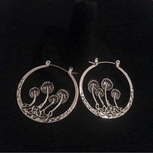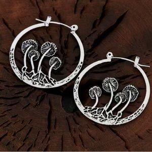 Retro Bohemian Style Gothic Silver Mushroom Hoop Earrings