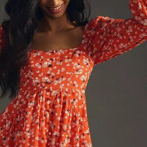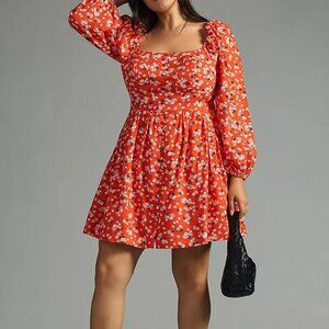 Retro By Anthropologie Puff-Sleeve Floral Mini Dress
