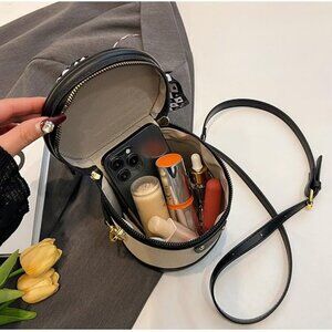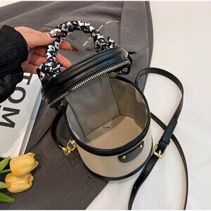 Features: Compact bucket shape with a top handle and detachable shoulder strap for easy styling as a crossbody or hand carry. Durable PU leather and canvas construction, with a zipper closure. Roomy enough for essentials like your phone, wallet, and keys. Its vintage-inspired silhouette adds a trendy touch to casual and dressier looks.