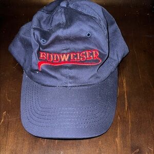 Navy cap with striking red Budweiser embroidery. Ideal for casual outings. Retro style, Velcro back, 100% cotton, NWOT