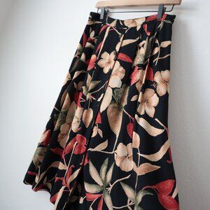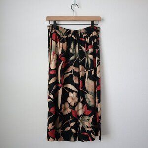 Dark floral button front midi skirt with elastic waist
