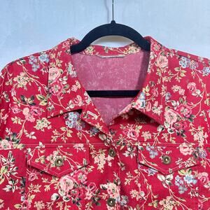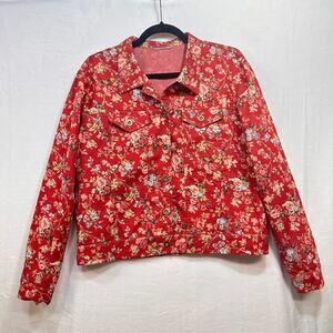 Retro Buttoned Red Floral Long Sleeve Jacket Blazer Medium Printed Boho Cottage