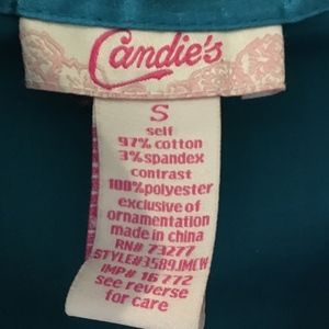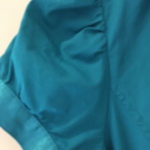 Blast from the past. Blue ruffled neck cotton button top with sateen edges on sleeves and front opening.