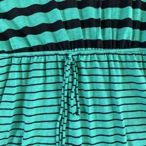 The dress is stretchy. Wear over leggings or jeans as a long top or wear as a mini dress. Super soft jersey fabric. Green with black stripes. See all pics! Ask questions before purchase. Thanks!