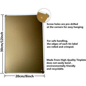 🧿Installation: This vintage tin sign is easy to hang because we have pre-drilled holes at the four corners. For safety, the edges of each metal sign are crimped and the four corners are rounded.