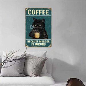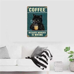 Retro Cat Coffee Metal Sign Vintage Kitchen Signs Wall Decor Because Murder