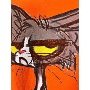 Retro Cat Tshirt 2X Orange Graphic Humor Animal Lover Cropped Funny