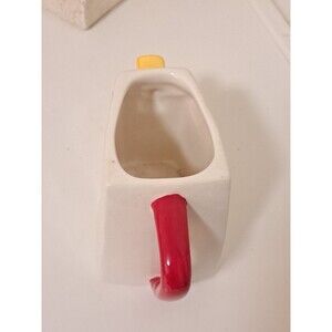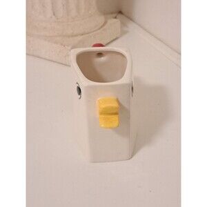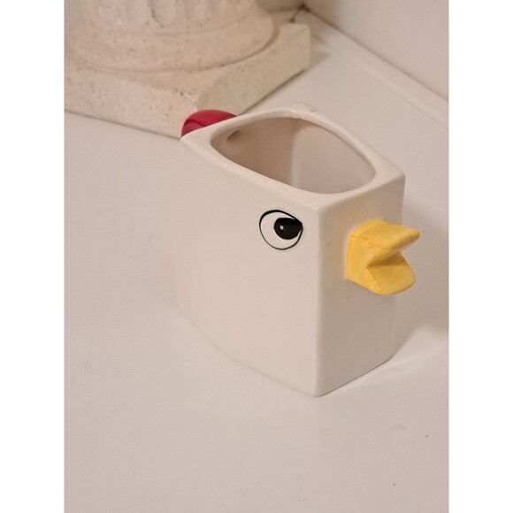 This Retro Ceramic Chicken Creamer is a charming and functional addition to any kitchen or dining room. Featuring a fun chicken pattern, the creamer is made of ceramic and beautifully showcases a retro style from the 1990s. Perfect for all occasions, this original creamer stands at 4 inches tall and 4 inches wide, adding a colorful and unique touch to your table setting. Made in China, this collectible piece is sure to be a conversation starter at your next meal. In excellent condition, there are no cracks or chips.