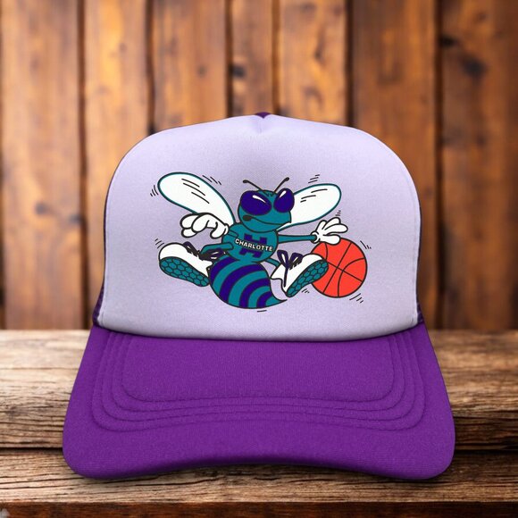 Retro Charlotte Hornets Mens Trucker Hat Purple Snapback Alternate Logo Ball Cap