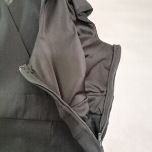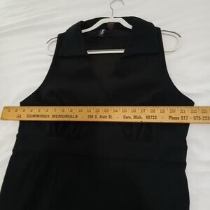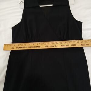 Step out in style with this retro-chic black bodycon dress! In stunning condition, this sleeveless dress features a flattering silhouette, a classic collar, and a convenient side-zip closure. The rear kick-pleat adds a touch of elegance and allows for easy movement.