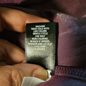 Chic and stylish blouse in deep purple. Features short sleeves and button-down front. Perfect for casual or formal wear. Fabric has very cool metallic sheen that is difficult to capture in pictures. Used, but clean, no damage. Allergy warning: household has both cats and dogs.