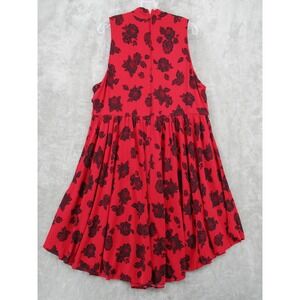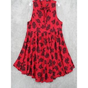 Keywords: Retro Chic, Red Dress, Floral Dress, Rose Print, Sleeveless Dress, Tie Neck Dress, Fit and Flare Dress, Plus Size Dress, Womens Dress, Casual Dress, Summer Dress, Rayon Dress, Red and Black Dress, Knee Length Dress
