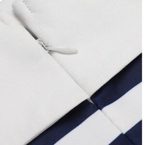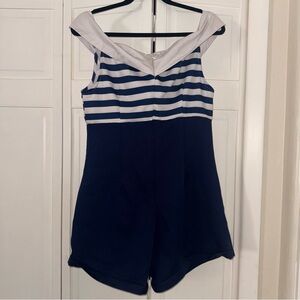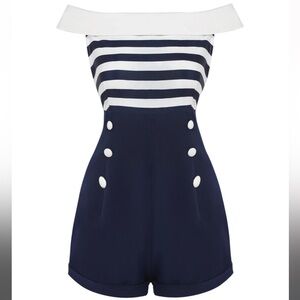 Elegant high waist shorts in navy with white stripes and button details. Perfect for a retro-inspired look.