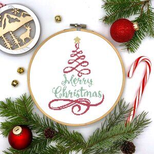 Retro Christmas Tree Merry Christmas Counted Cross Stitch Kit
