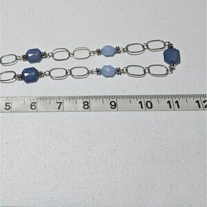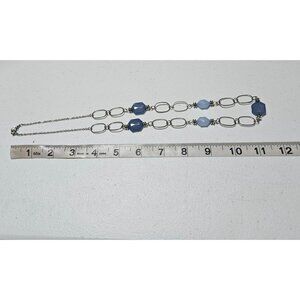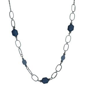 This necklace combines a silver-tone chain with faceted blue beads for a sleek, versatile design. Its lobster clasp ensures secure wear.