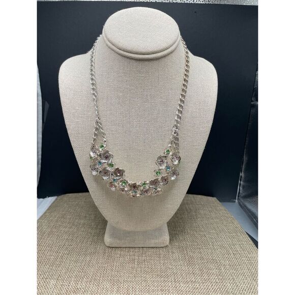 Retro Chunky Rainbow Glass diamanté choker necklace Floral Spring Summer