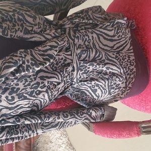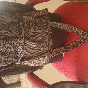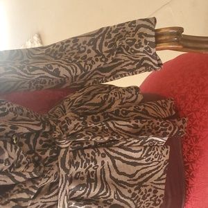 This is a retro, Marisa Christina, Leopard print cloth jacket with ties. Super cute frill collar and very comfy! it is missing a snap button on one side.