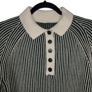Retro Collared Knit Sweater Women's M White Green Vertical Stripes Pullover