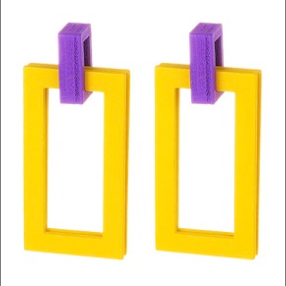 Color bound purple & yellow earrings. Rectangle shaped wooden earrings guaranteed to be a compliment magnet.