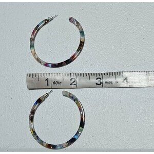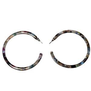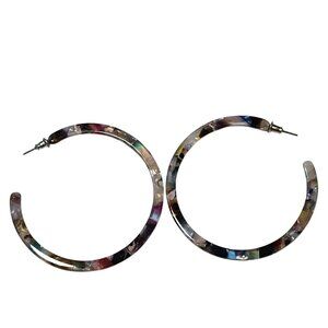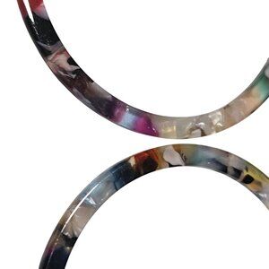 These resin hoop earrings offer a vibrant multicolored design, enhancing any outfit with a pop of color while being lightweight for comfortable wear.