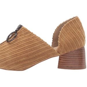 Retro Corduroy Front Zip Detail kitten Heel Pump