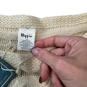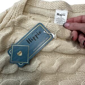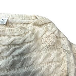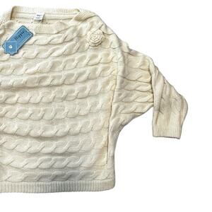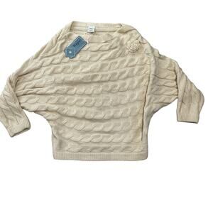 Retro Cream Knit Pullover Sweater Military Hippie Removable Flower Batwing S/M