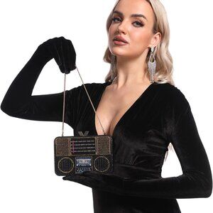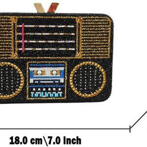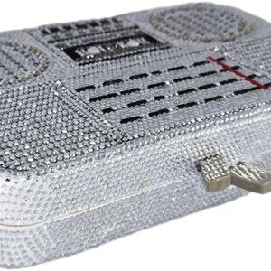 Compact & chic mini crystal clutch bag, with its portable dimensions 7.0 x 1.5 x 4.75 inches which is about 18.0 x 4.0 x 12.0 CM, this old school boom box silver rhinestone clutch purses option perfectly balances elegance with practicality. The square silhouette glistens with machine-applied crystals, making it a dazzling crystal clutch bag for parties, weddings, or cocktail events