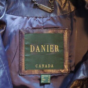 Retro Danier Purple Full Length Leather Coat Lined Stand-up Collar Size 12 Y2K