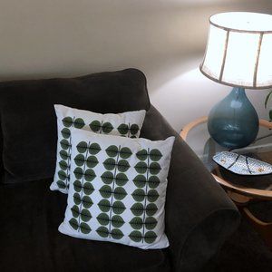 Retro Danish Modern Berså Mod Green Throw Pillows. Stig Lindberg Berså vintage print.
