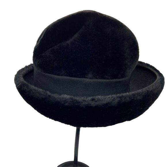 Vintage Chesterfield Original Womens Black Fur Fitted Retro Derby Hat Size 6 3/4