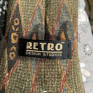 Retro Design Studios Silk Tie Green Blue Geometric Pattern Made In Costa Rica