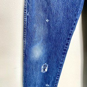 OTHER: Authentic distressing on front; paint stains on back leg (both pictured); dark wash.