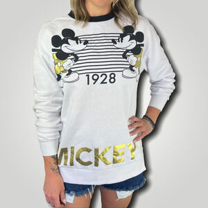 Retro Disney Mickey Mouse 1928 Graphic Sweatshirt Size Small White Black Gold