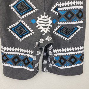 Retro Distrikt Men's Sz XL Grey Aztec Print Drawcord Casual Board Shorts