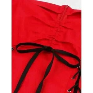 Retro Drawstring Gothic Lace Up Dress, Off Shoulder Short Sleeve Waist Sz M