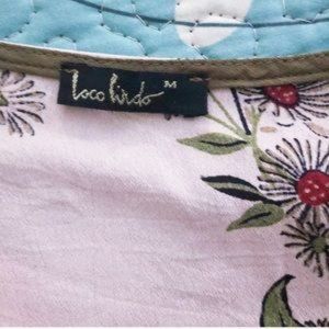 Cream base color with Olive green trim. Pinkish red flowers in design.