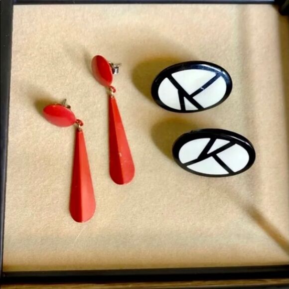 Note that red earrings have some slight paint chipping
