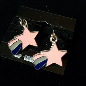 Retro Earrings Pink Gray Black Shooting 0.75" x 1" Star Silver Tone