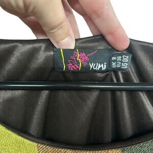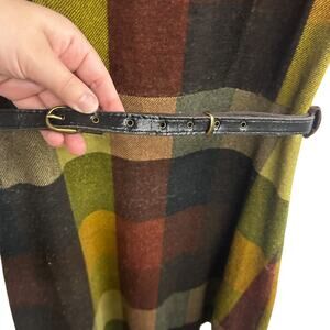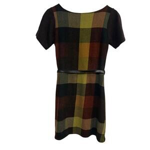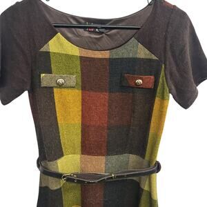 Retro Fall Plaid Dress Yumi Mod Colorblock Belted Mini Size S