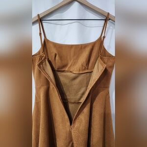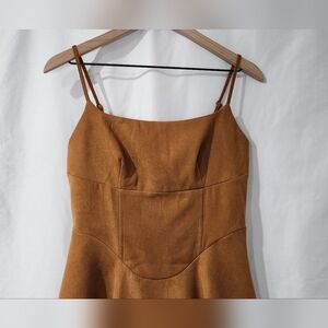 Retro Faux Suede Dress Size Medium Chestnut Strappy Mini Empire Coquette Girl