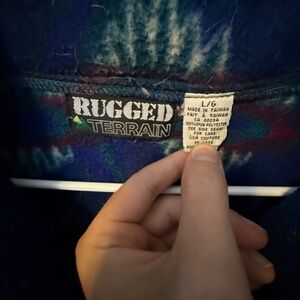 Retro Fleece- 80's/90's Pattern- Pullover Size Large- Blue/Green- Zip Up