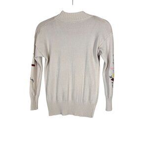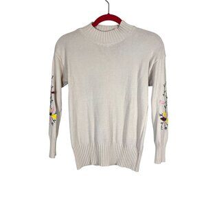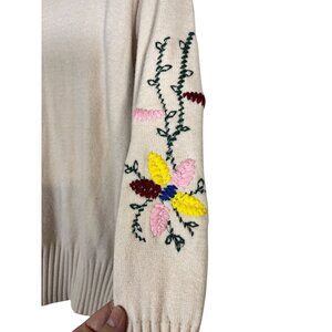 Retro Floral Embroidery Sweater Cream S Boho Western Hippie Chic Preppy 80s