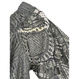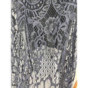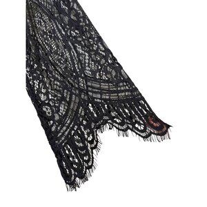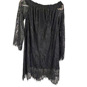 Retro Floral Lace Off Shoulder Dress M Black Fringe Witchy Grunge Neutral Chic