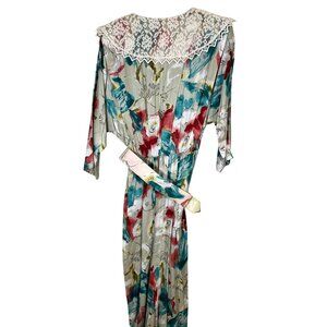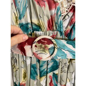 Retro Floral Midi Dress S White Colorful Prairie Mod Boho Classic Chic 70s