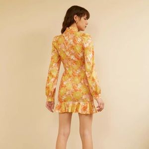 Retro Floral Ruffle Hem Mini Dress