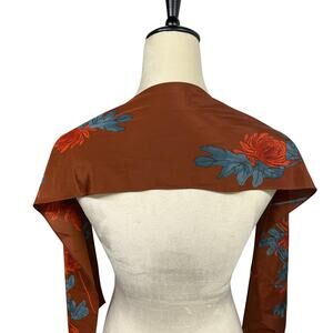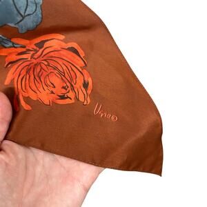 Vintage floral silk scarf rust brown orange teal vena signed retro chic