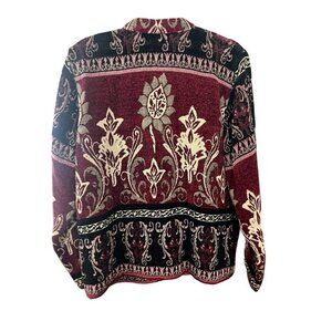 Retro Floral Tapestry Jacket M Red Retro Classic Artsy Beaded Festive Boho 80s