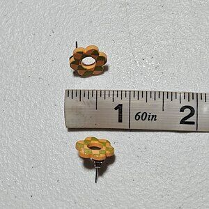 These flower-shaped earrings feature a stylish checkerboard design in orange and green tones. They are lightweight and versatile, adding a playful touch to any outfit.