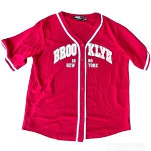 Show your love for Brooklyn with this Retro Fox red baseball style jersey. The unisex adult jersey is made for fans who want to show off their support. The jersey is size XL and features the Brooklyn logo on the front, along with the Retro Fox logo.