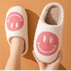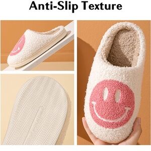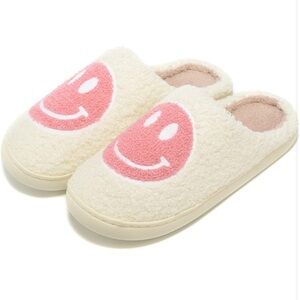 Retro Fuzzy Face Slippers for Women Casual Smile Face Slippers Size 9-9 1/2